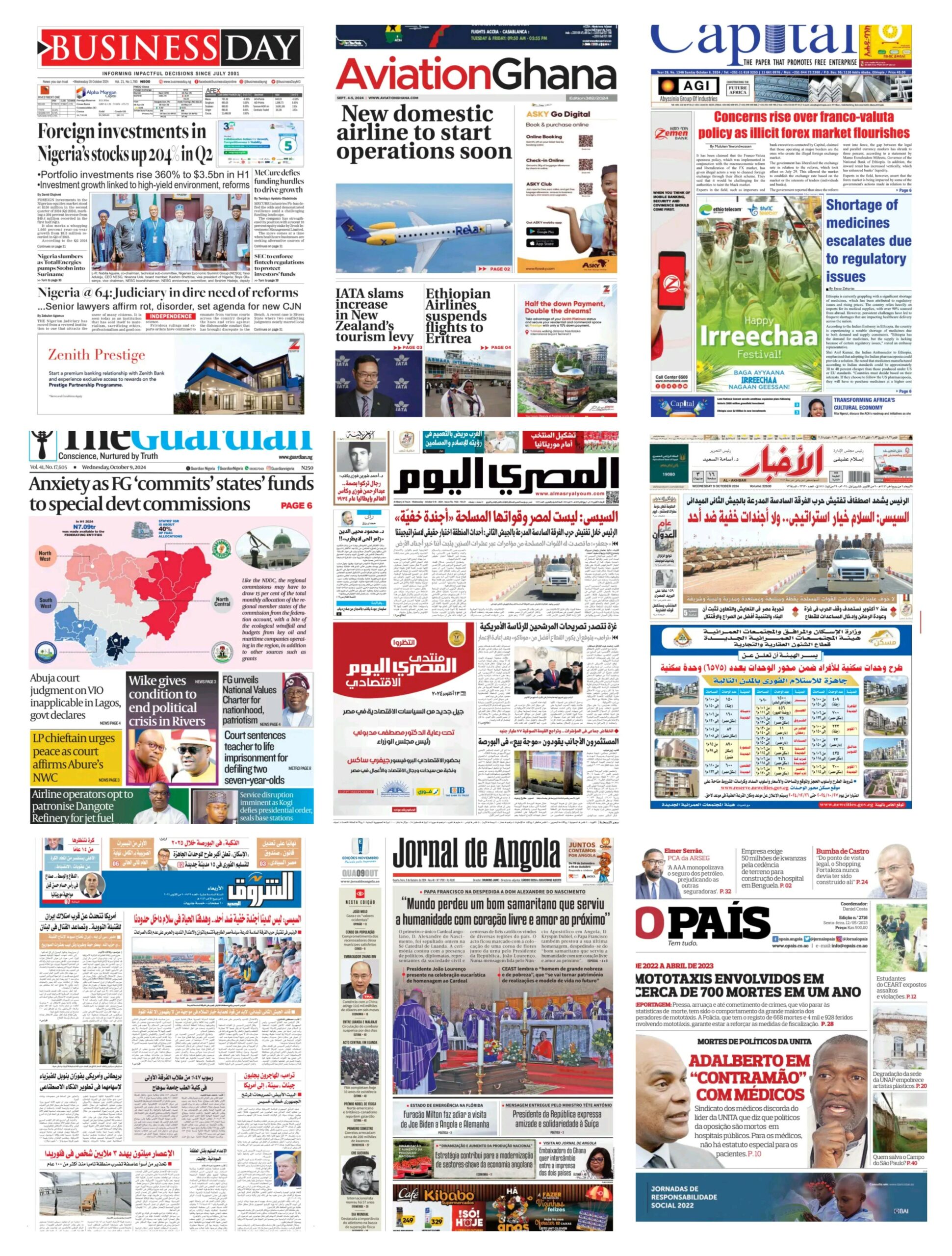 پیشخوان – صفحه اول روزنامههای آنگولا، مصر