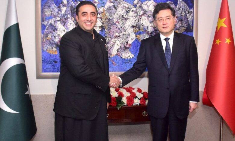 چین گنگ، وزیر امور خارجه تازه منصوب شده چین، اولین سفر خود به پاکستان را در ۶ و ۷ مه انجام داد. در یک نشست خبری مشترک در پاکستان با بلاول بوتو زرداری، وزیر امور خارجه، چین اظهار داشت که ثبات پیششرط توسعه است. او گفت که چین بهعنوان همسایه، دوست و شریک خوب پاکستان، به نیروهای سیاسی داخل پاکستان توصیه میکند که اجماع ایجاد کنند، ثبات را حفظ کنند و بر بهبود اقتصاد و معیشت مردم تمرکز کنند.