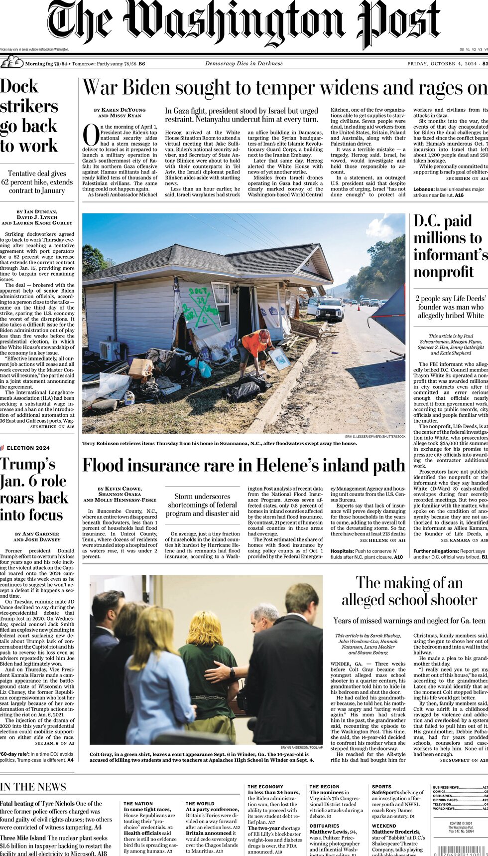 در حالی که قربانیان هلن منتظرند، بودجه فما برای کمک به مهاجران غیرقانونی تمام میشود. دبیر امنیت داخلی آلخاندرو مایورکاس هشدار داد که آژانس مدیریت اضطراری فدرال در حال اتمام بودجه برای کمک به مناطق سیلزده جورجیا و کارولینای شمالی است.