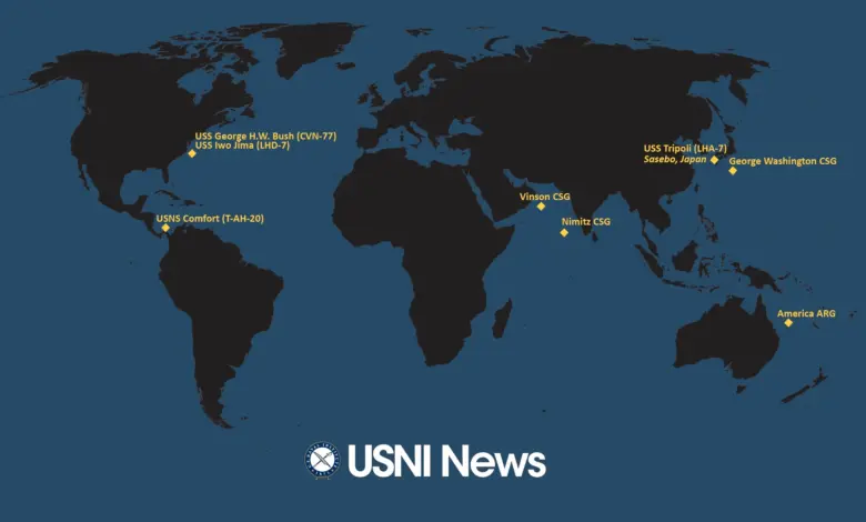 ⏳ مدت زمان مطالعه: ۴ دقیقه | ✏️ ناشر/نویسنده: یواسانآی نیوز/کارکنان موسسه نیروی دریایی ایالات متحده | 📅 تاریخ: June 23, 2025 / ۳ تیر ۱۴۰۴ ⚠️ هشدار: بازنشر این مقاله با هدف ارائه دیدگاههای متنوع صورت گرفته و به معنای تأیید یا پذیرش مسئولیت دیدگاههای مطرحشده نیست. اطلاعات زیر، موقعیتهای تقریبی گروههای ضربت ناو …